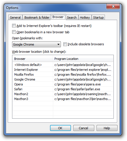 Options: Brwoser